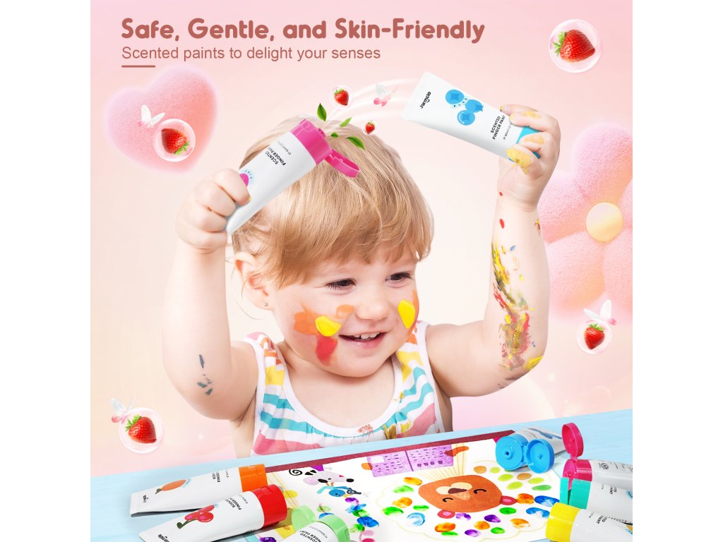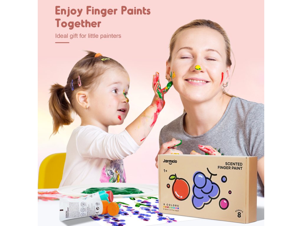 - Krémová textúra vhodná na maľovanie prstami i štetcom – výborná pre rozvoj kreativity a motoriky