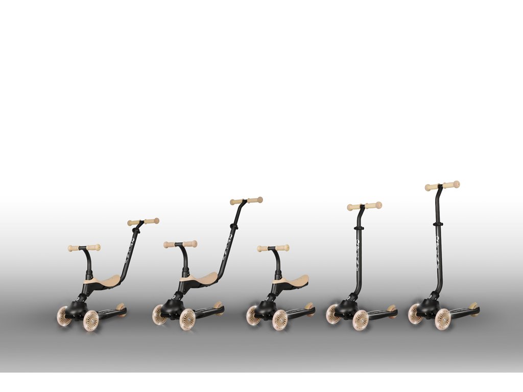 Riadidlá a sedadlo rodiča sú odnímateľné a môžu sa používať ako normálna kolobežka pre deti do 50 kg