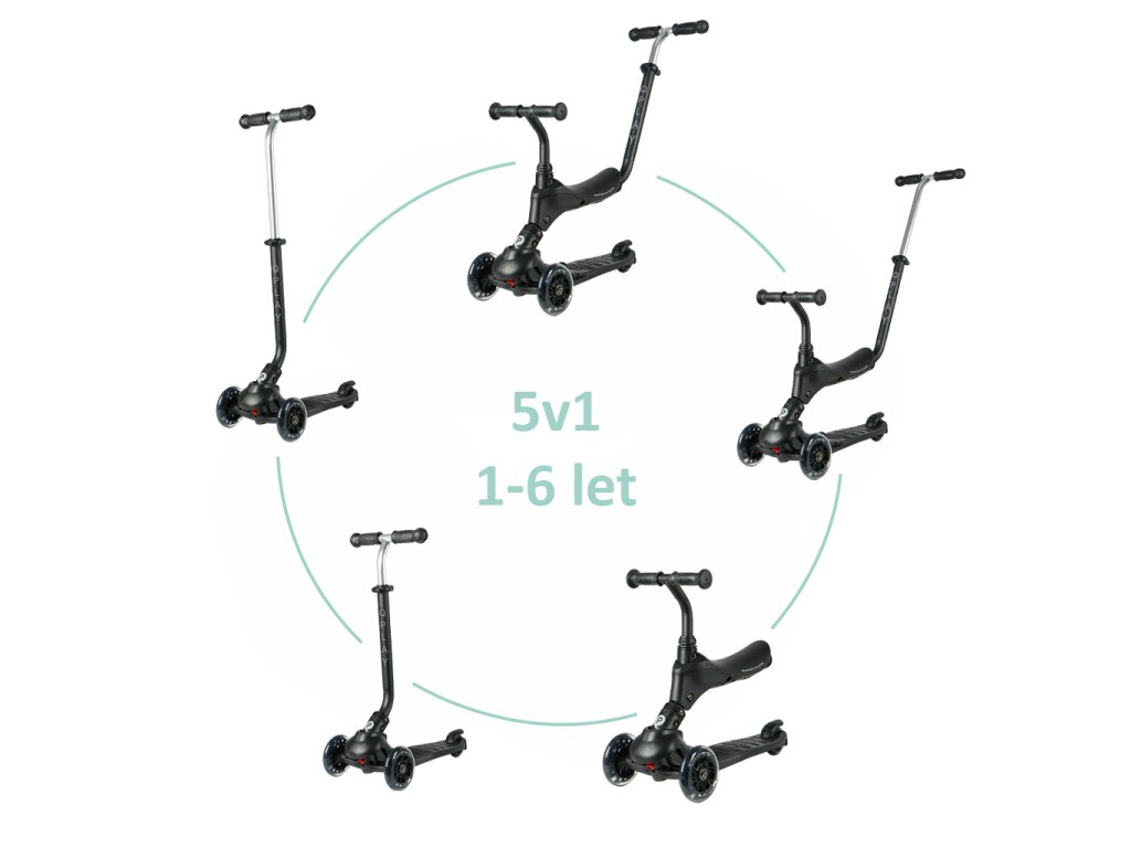 QPLAY Kolobežka Sema Pro Black, 5 v 1, vek 1-6 rokov