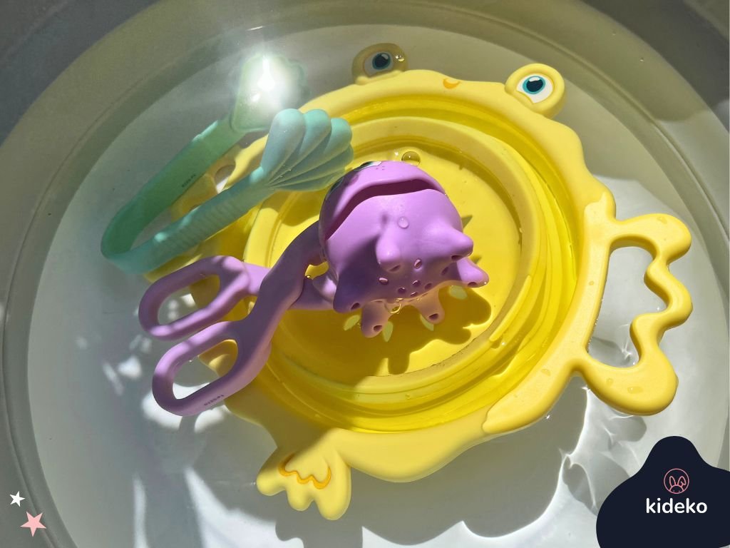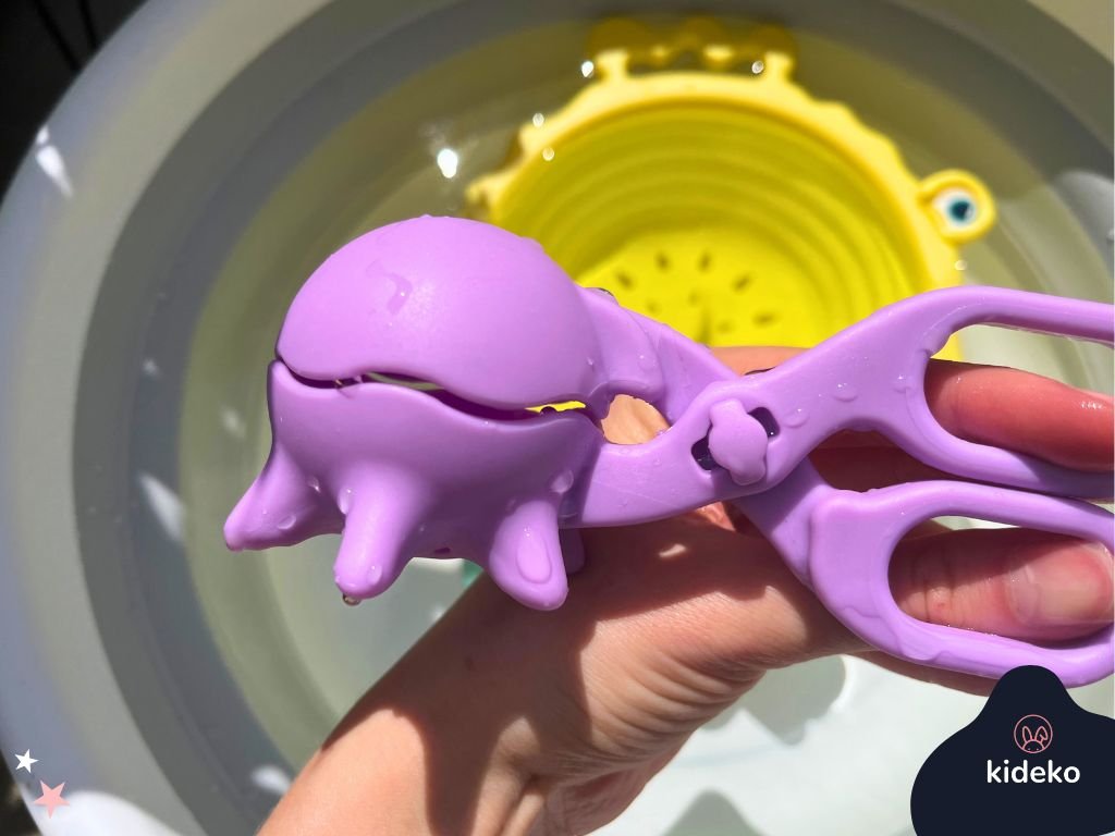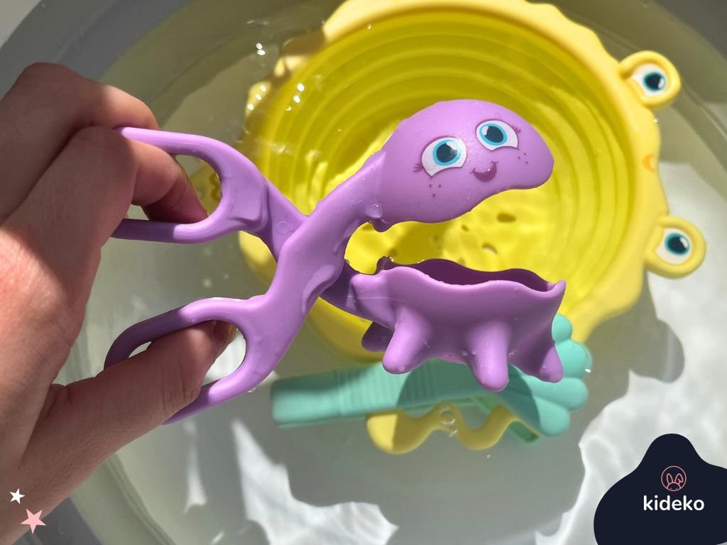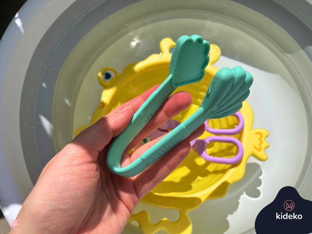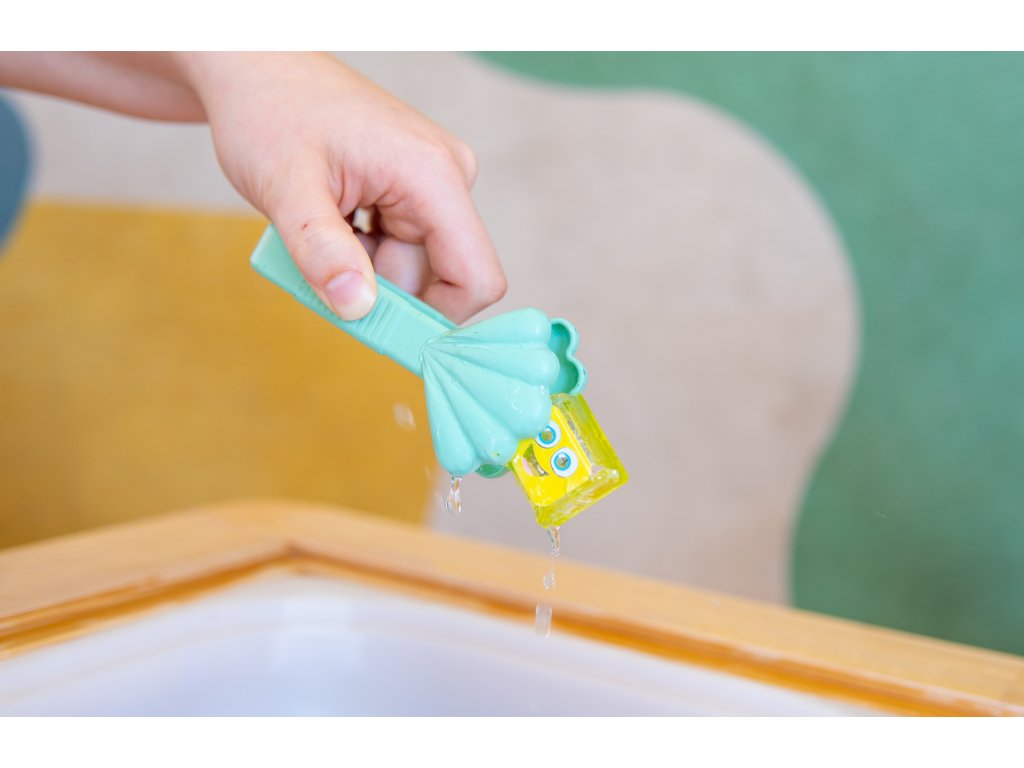 Táto hravá sada nástrojov je ako stvorená pre malé ruky a veľké objavy. Využijete ju ako senzorickú pomôcku pri hre s nádobou vody (lovenie drobných predmetov..) alebo v bazéne či na kúpalisku s menšími deťmi. Vyrobené z kvalitného silikónu, vhodné od 18 mesiacov. Ideálne na hru s vodou, pieskom alebo senzorickými materiálmi.