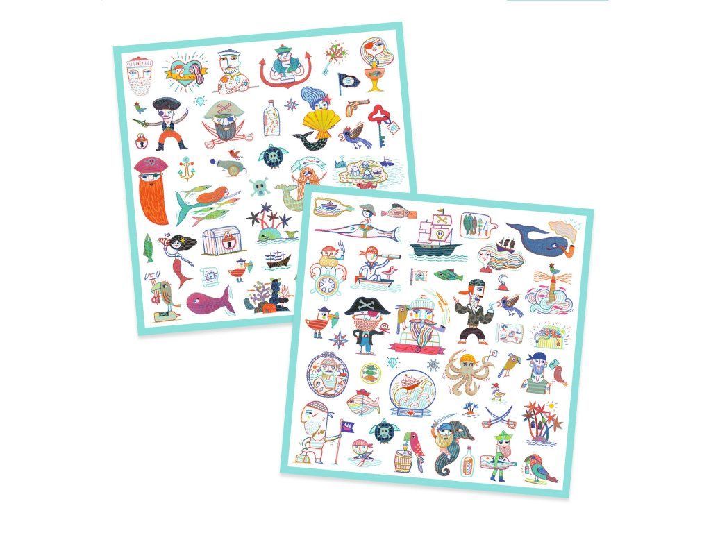 Samolepky Djeco s motívom pirátskeho dobrodružstva sú rýchly spôsob, ako zabaviť deti bez obrazoviek.V balení je 160 papierových samolepiek, ktoré sa dajú lepiť voľne – na kresby, zošity, denníky či darčekové balenie.