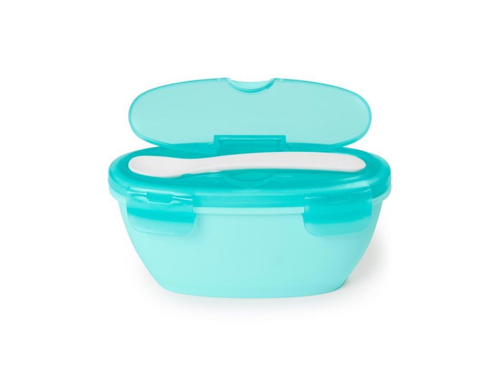 SKIP HOP Miska s lyžičkou v ochrannom puzdre Easy Serve Teal 240 ml, 3m+