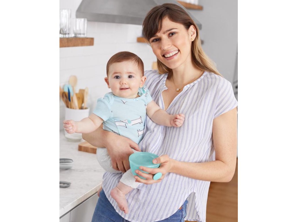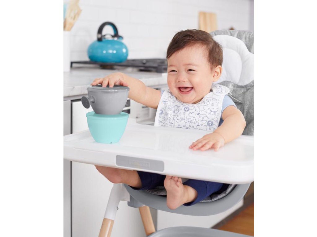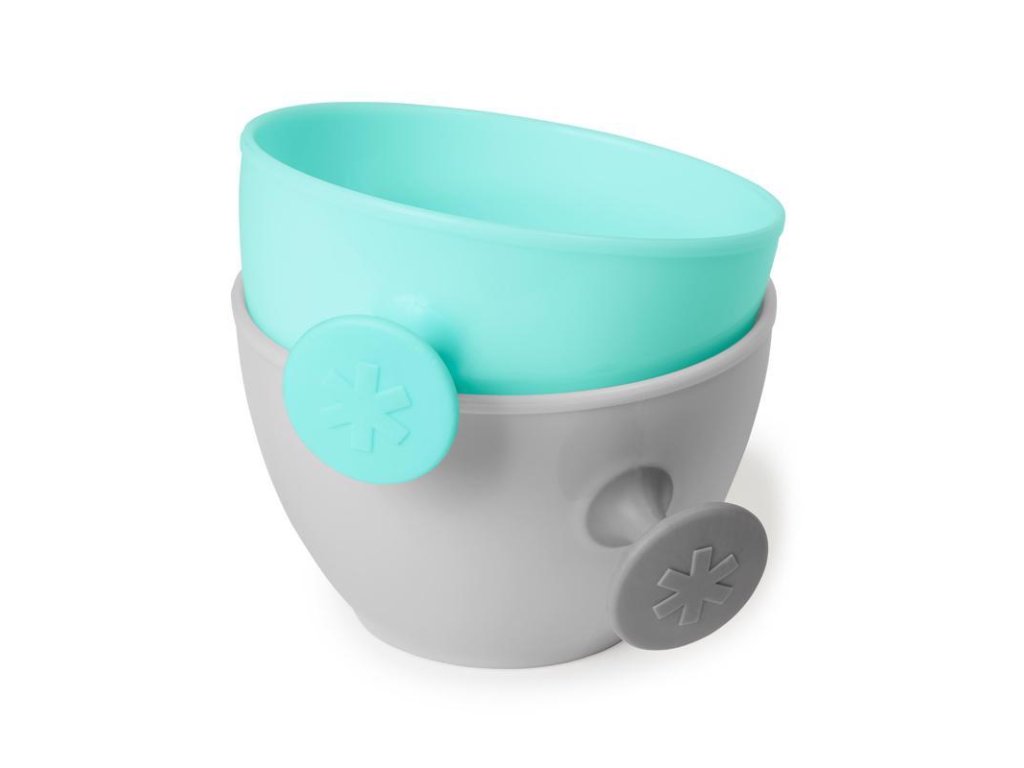SKIP HOP Misky s vrchnákom a držiakom Easy Grab Grey,Teal 2 x 240 ml, 3m+