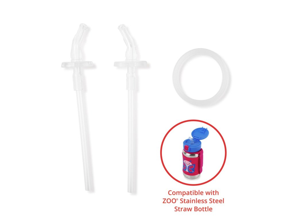 Extra slamky sa vždy zídu! Táto sada dvoch silikónových slamiek, navrhnutá špeciálne na použitie s fľašami na slamku z nehrdzavejúcej ocele ZOO®, obsahuje všetko, čo potrebujete na to, aby si váš drobec užíval pitie – doma aj na cestách!Vlastnosti: