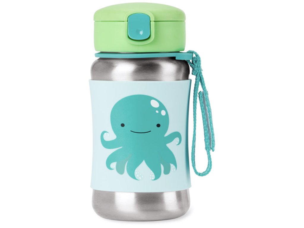 SKIP HOP Spark Style Fľaša so slamkou na vodu nerez Chobotnica 12m+