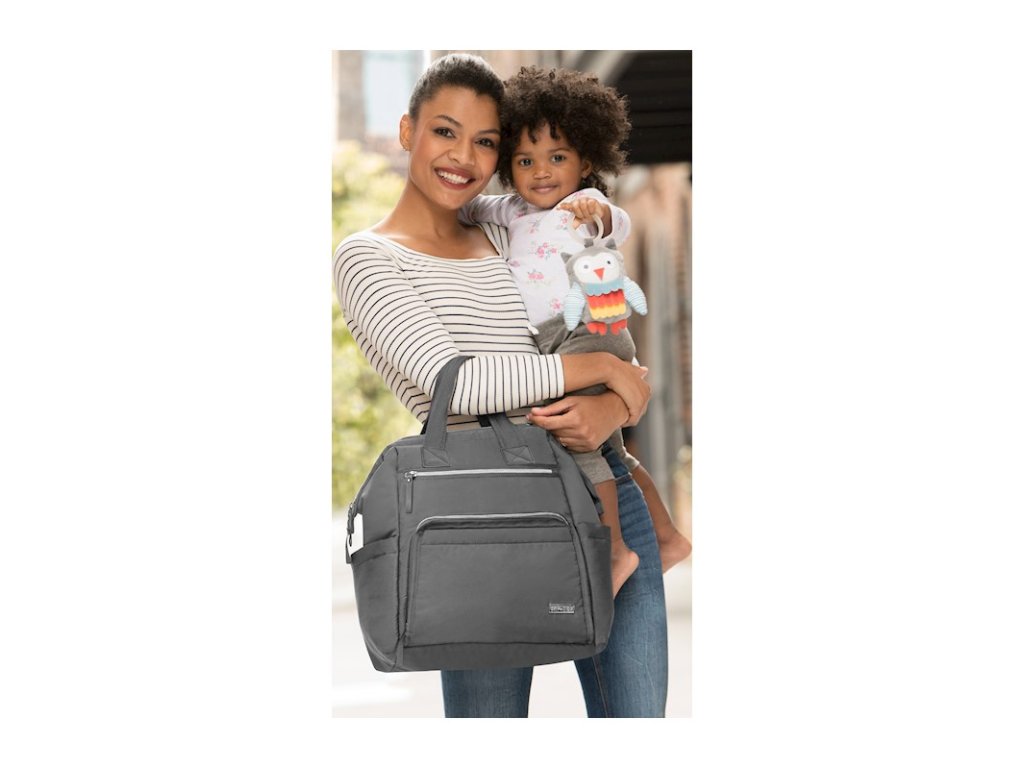 Pre štýlové mamičky, ktoré nerady neustále hľadajú v prebaľovacej taške všetko čo potrebujú. Predstavujeme tašku/batoh Mainframe Wide Open, ktorá umožňuje ľahký a prehľadný prístup ku všetkému, čo je zbalené vo vnútri. Tašku možno otvoriť na široko, čo poskytuje jasný prehľad o veciach, ktoré sú v nej zbalené. Inovatívna kombinácia mäkkej tkaniny a elegantného a jemne športového dizajnu dodáva taške na jedinečnosti.Taška ponúka veľkú hlavnú priehradku s bezpečným zapínaním na zips a množstvo vreciek pre veci ako je telefón, fľaša na vodu a kľúče. Ľahko uchopiteľné dvojité horné rukoväte a nastaviteľné popruhy, ktoré umožnia tašku použiť ako batoh, zabezpečia pre mamičky voľné ruky, čo je na nezaplatenie.