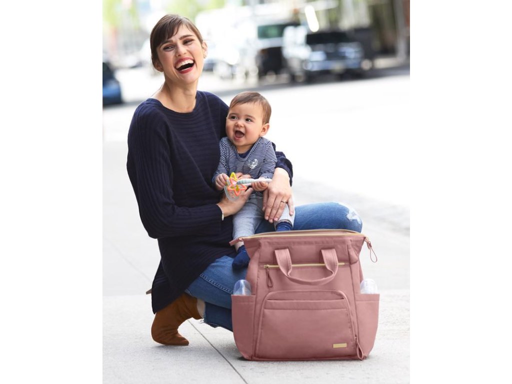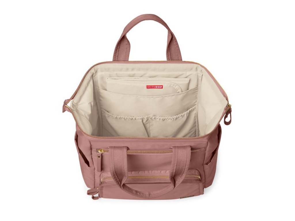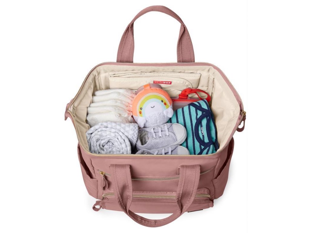 Taška ponúka veľkú hlavnú priehradku so zabezpečením na zips a množstvo vreciek pre veci ako je telefón, fľaša na vodu a kľúče. Vďaka nastaviteľným popruhom je možné tašku použiť ako batoh, a to mamičkám umožní mať voľné ruky, čo je na nezaplatenie.