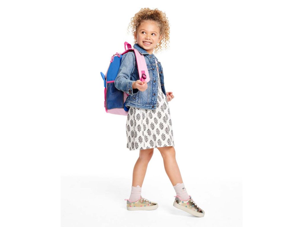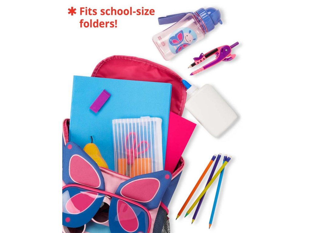 Krásny batoh s motívom motýľa. Veľkosť presne pre školské učebnice a zošity, písacie potreby, tašku na desiatu a iné pomôcky. Roztomilý batoh pre veľké deti sa hodí na všetko potrebné, čo vaše dieťa potrebuje v triede i mimo nej. Vďaka širokému a ľahko prístupnému otvoru a priehľadnému prednému vrecku je možné zabaliť a mať na dosah potrebné veci, zatiaľ čo sieťované vrecko na fľašu zabezpečí, aby boli nápoje po ruke.Vlastnosti:
