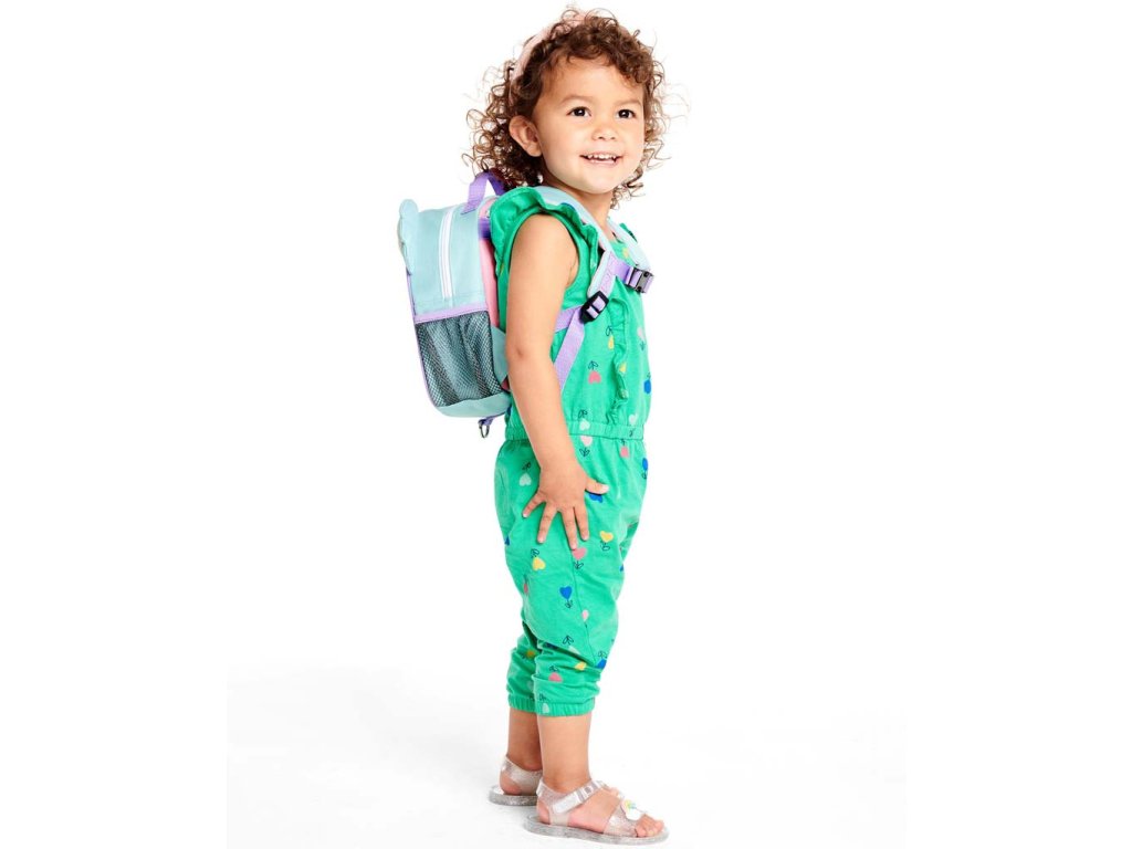 Krásny batôžtek v štýle Skip Hop s bezpečnostným pásikom. Pásik je možné podľa potreby odopnúť / pripnúť. Batôžtek má polstrované nastaviteľné ramenné popruhy, ucho na prenášanie, hlavné vrecko na zips, sieťovanú bočnú kapsičku na fľašu, aby sa batôžtek nestratil. Jednoduchá údržba. Obsahuje 0% BPA, bez ftalátov.Upravte oba ramenné popruhy na ramená dieťaťa. Upnite hrudný pásik / zacvaknite sponu. Nastavte správnu dĺžku ramenných popruhov podľa postavy vášho dieťaťa. Podľa potreby pripnite bezpečnostný pásik pomocou striebornej karabínky, ktorú pripevníte k striebornému pútku v tvare "D".