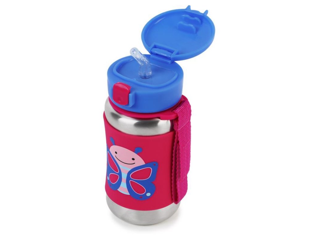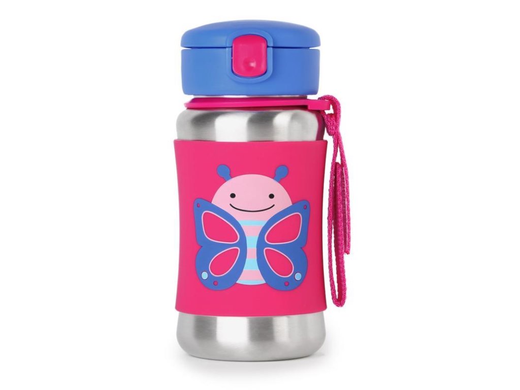 SKIP HOP Zoo Fľaša so slamkou na vodu nerez Motýlik 12m+