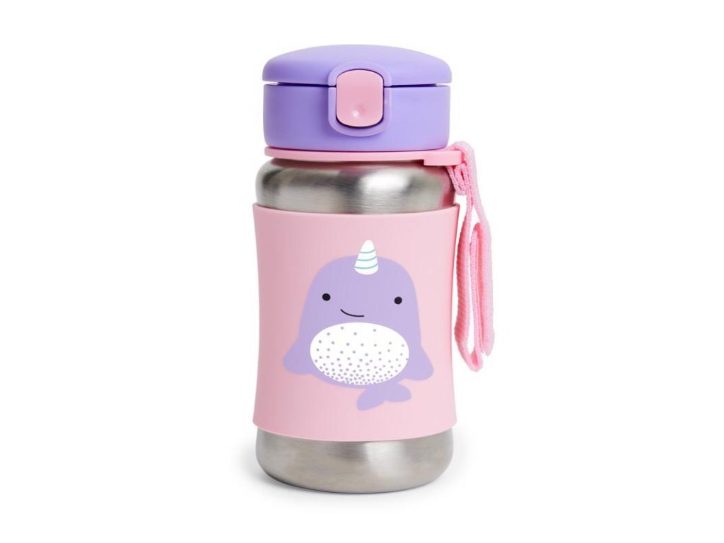 SKIP HOP Zoo Fľaša so slamkou na vodu nerez Narval 12m+
