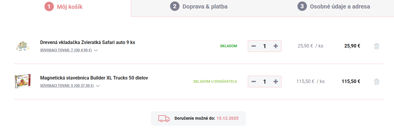 V košíku si môžete skontrolovať aj predpokladaný termín doručenia (info box pod zoznamom produktov).